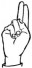 На ћирилици написано РАНИСЛАВА ПУЧИЋ састоји се из 14 слова [?]. Исписано ћириличном једноручном азбуком за глувонеме: